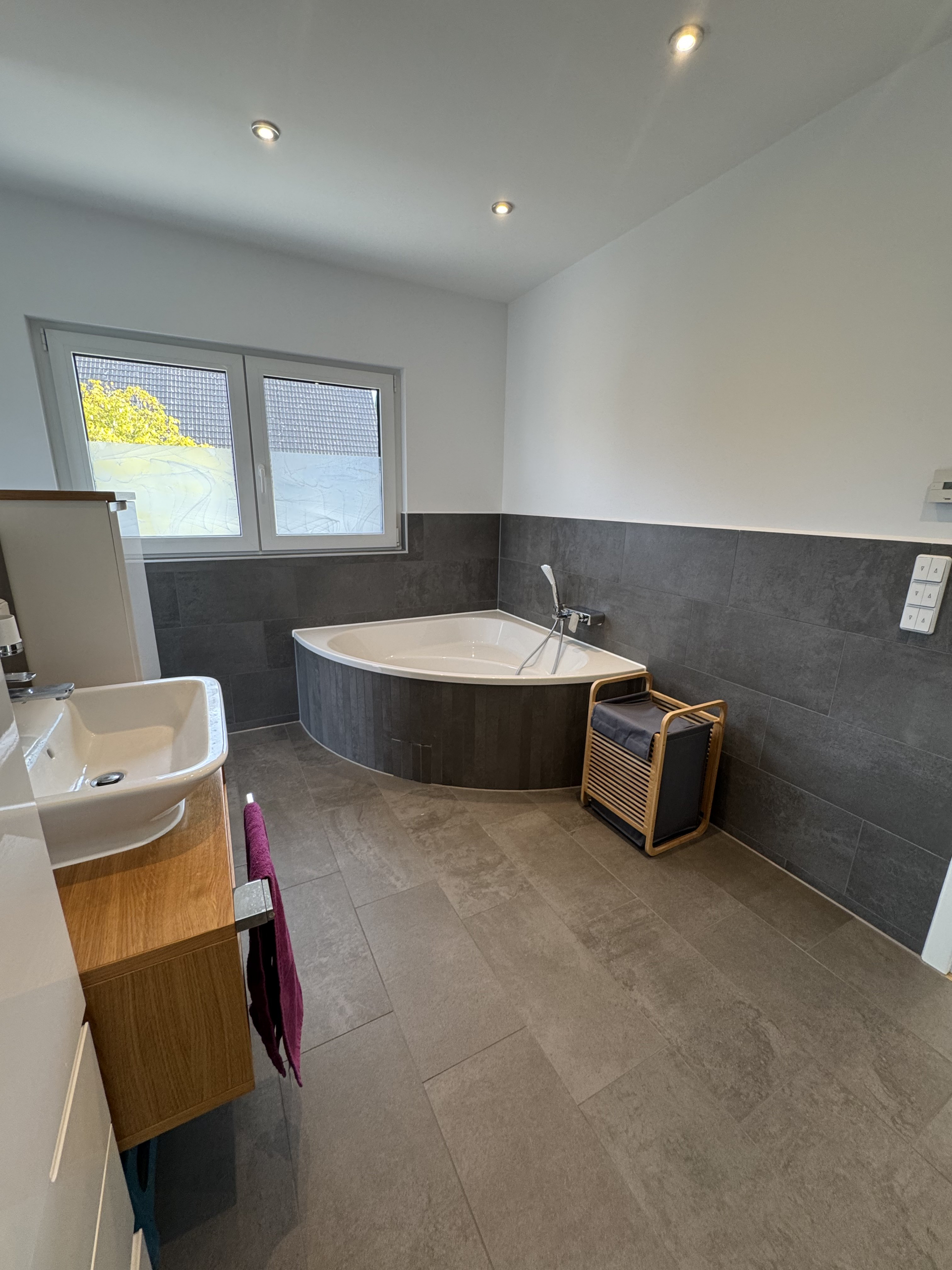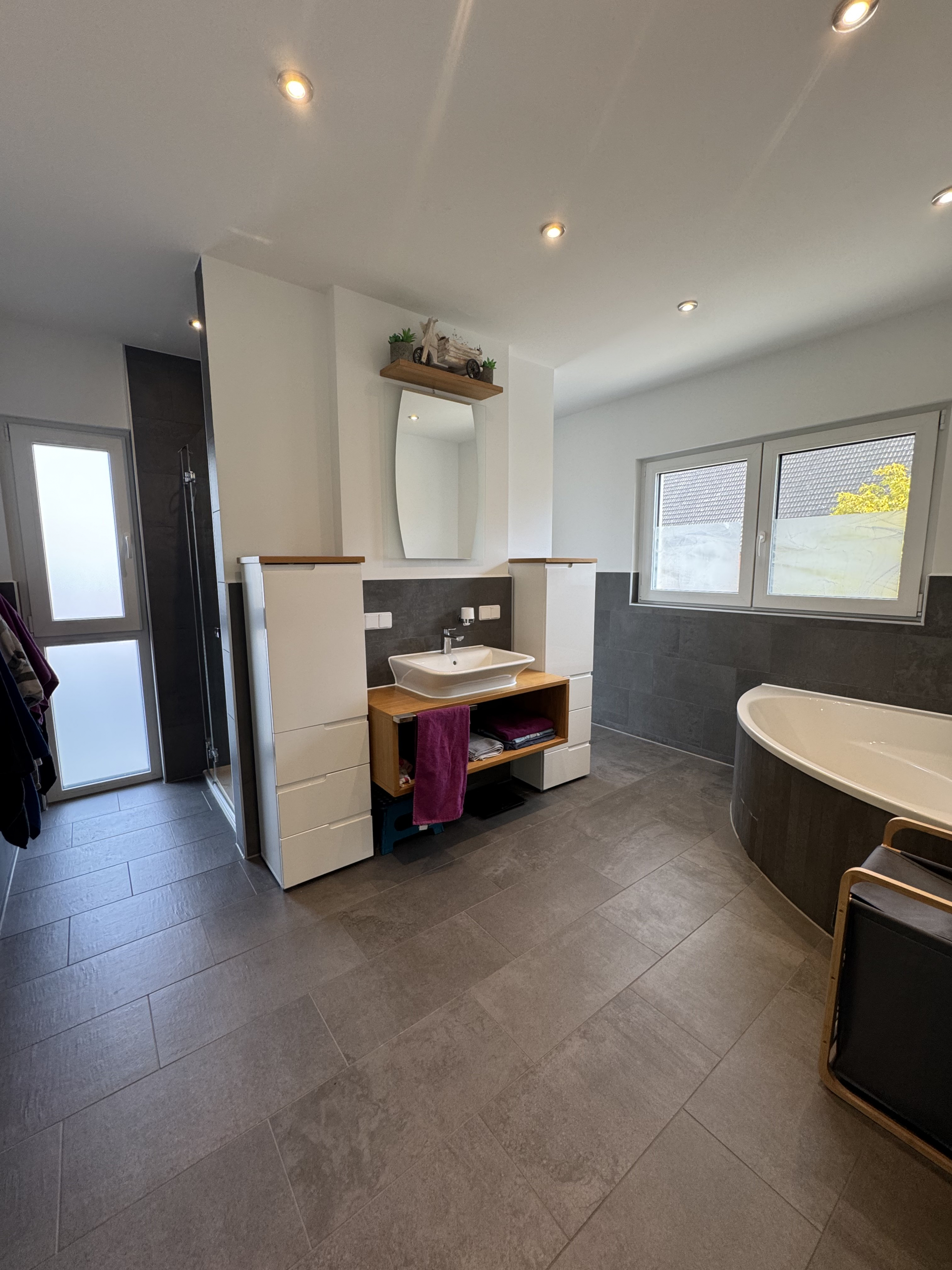 Ihre private Wellness-Etage Das Obergeschoss ist als privater Rückzugsort konzipiert. Die Master-Suite mit separater Ankleide und die großzügigen Kinderzimmer bieten jedem Familienmitglied seinen eigenen Freiraum. Das Badezimmer? Eine Hommage an moderne Wellness-Kultur – hell, edel und perfekt durchdacht.