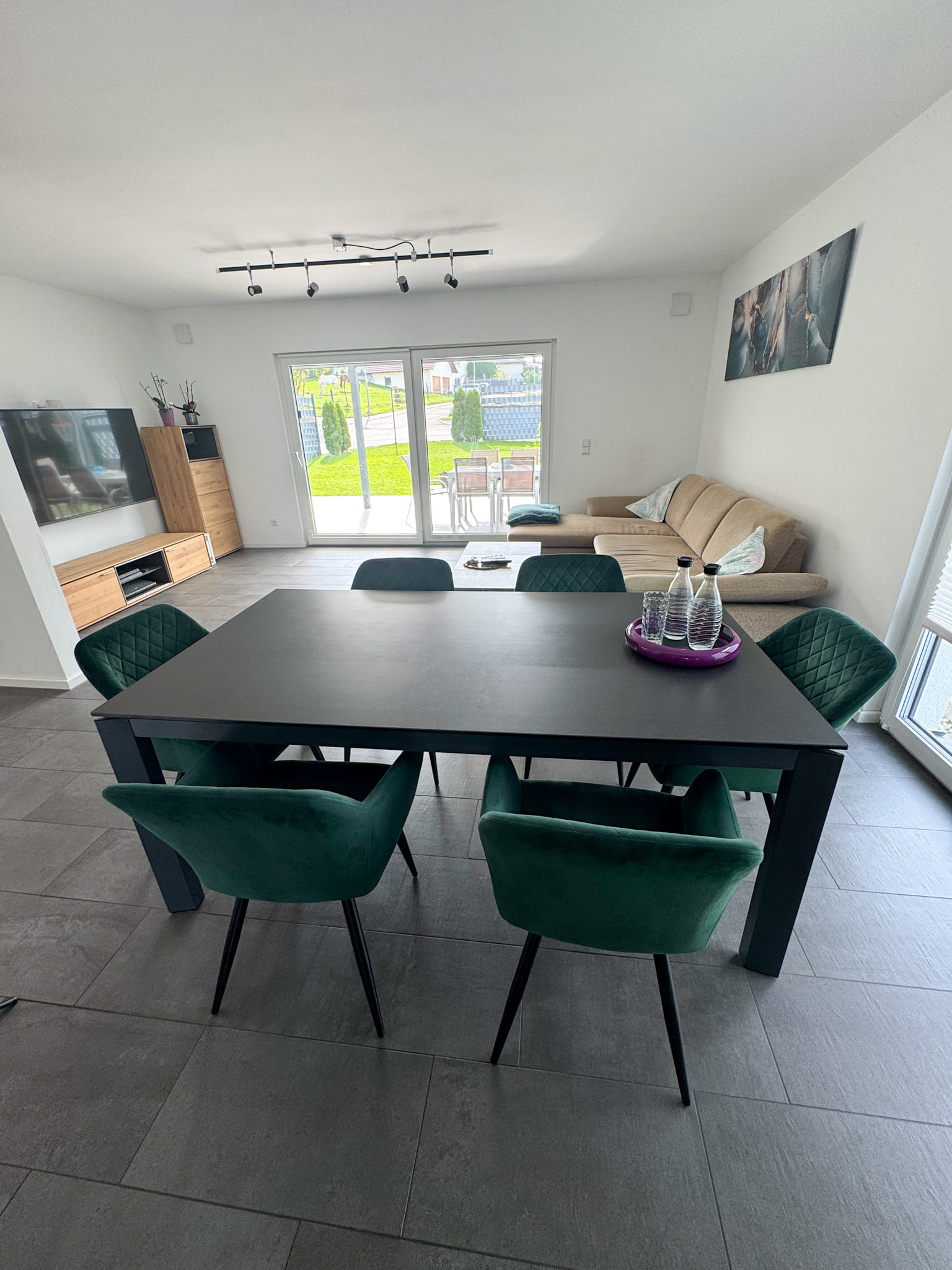 Licht, Luft und grenzenlose Freiheit Schon beim Betreten spüren Sie die besondere Atmosphäre: Der riesige, lichtdurchflutete Wohn- und Essbereich bildet das Herzstück des Hauses. Dank der raumhohen Verglasungen verschmelzen Innen- und Außenraum zu einer Einheit. Die hochwertige Design-Küche ist mehr als nur ein Ort zum Kochen – sie ist der Treffpunkt für Familie und Freunde, während die Fußbodenheizung unter den harmonisch gewählten Materialien für eine unsichtbare, wohlige Wärme sorgt.